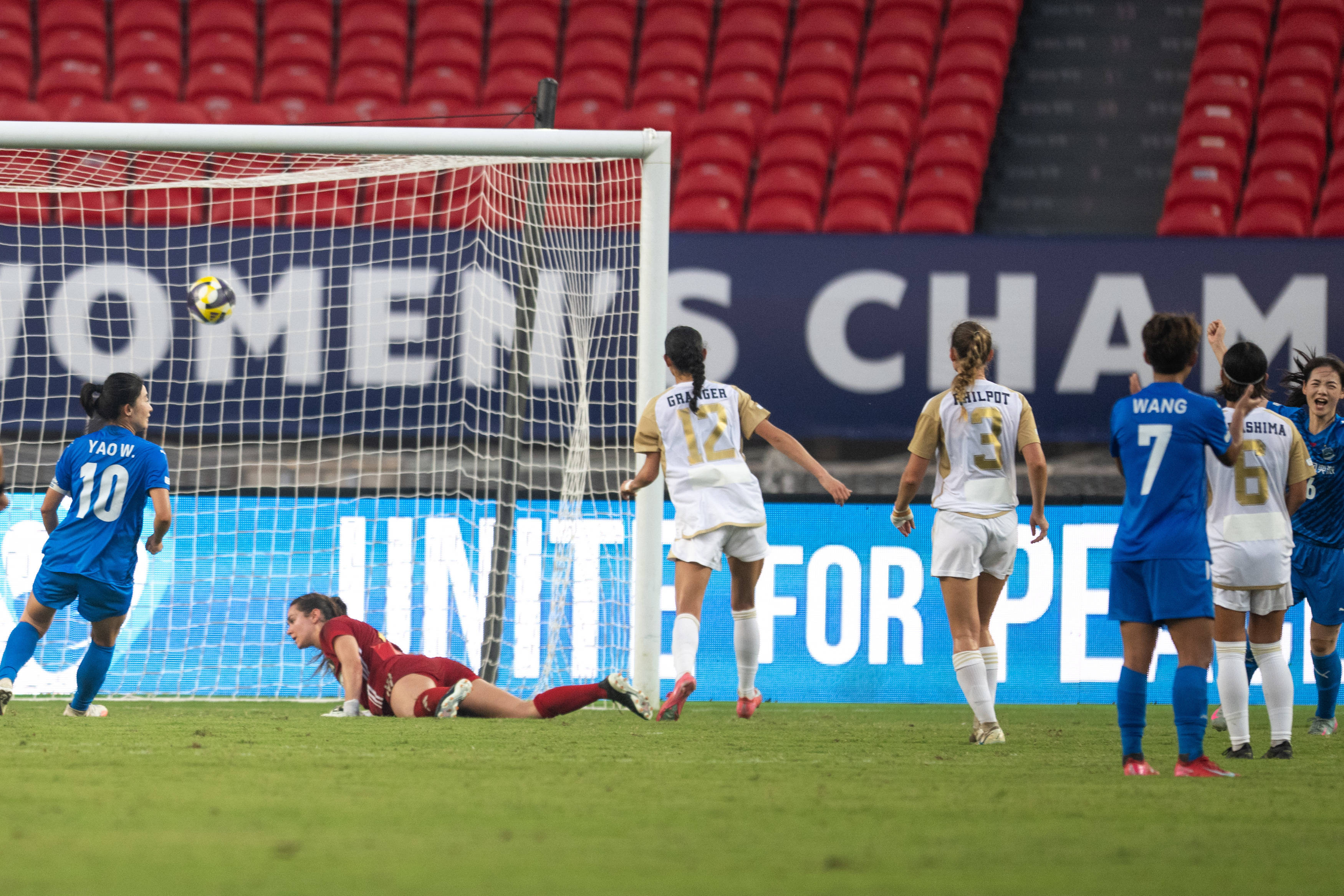 10月8日,奥克兰联队守门员米切尔(左二)未能戒备住武汉车谷江大队球员姜晨璟(右一)的攻门。新华社记者 肖艺九 摄全场补时阶段,奥克兰联女足豪恣反扑,试图扳平比分。武汉队门将屡次正经扑救,化解险情,紧紧守住胜果。终场哨响,比分定格在1:0,武汉车谷江大女足凭借浮滑拼搏与团队领略,在首届外洋足联女足冠军杯预选轮中笑到临了。