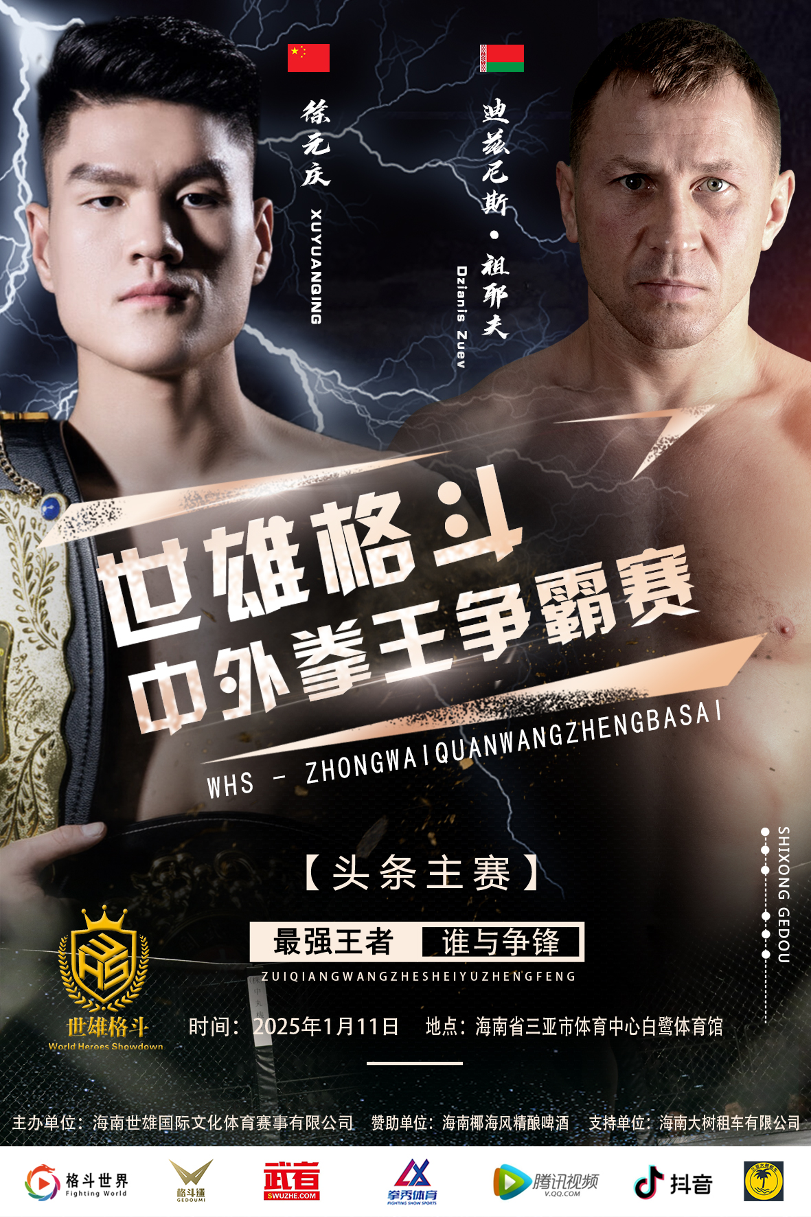 本次大赛的头条主赛,由中国解放搏击名将“小霸王”徐元庆,对阵白俄罗斯国宝级明星拳王“特种兵”迪兹尼斯·祖耶夫(Denis Zuev)。