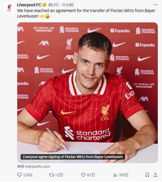 真-过年了! 利物浦官宣维尔茨6个小时内, 连发了31条推文体育录像/图片