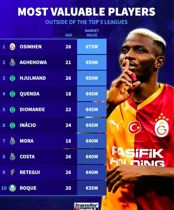 奥斯梅恩最近通过一位英国牙东谈主向拜仁慕尼黑传递了加盟意向。这位身价高达7500万欧元的尼日利亚时尚,咫尺着力于土耳其朱门加拉塔萨雷,是五大联赛除外身价最高的球员。