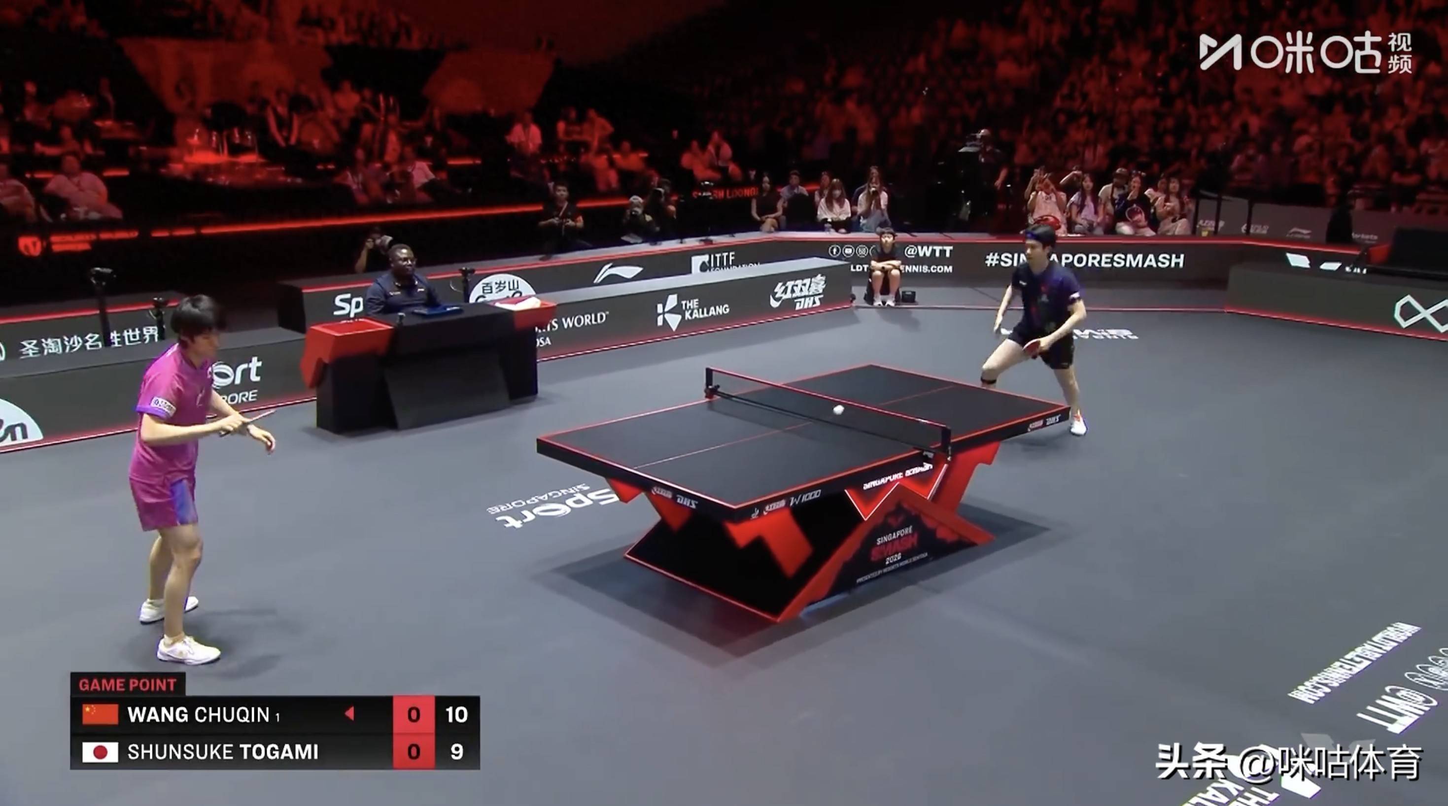 2026WTT新加坡大满贯男单赛事,王楚钦迎战日本选手户上隼辅。